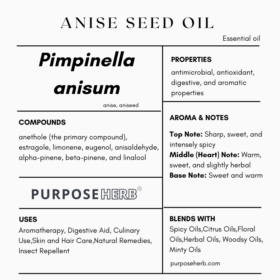 زيت اليانسون العطري (زيت بذور اليانسون ) ، ويُسمى أيضًا زيت اليانسون، يتم تقطيره بالبخار من بذور نبات يُعرف نباتيًا باسم Pimpinella anisum